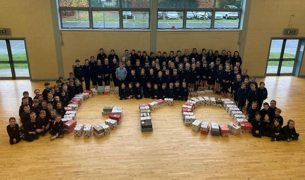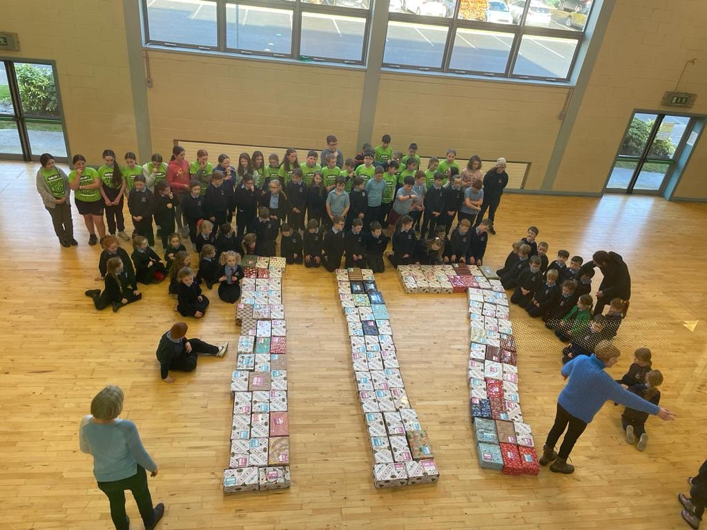 Sa chéad téarma scoile gach bliain, bailímid boscaí lán le rudaí deasa chun cur chuig páistí ar fud an domhain a bhfuil ar ghannchuid agus ag fulaingt dá bharr cogaidh nó gorta. Is tionscnamh an shímplí é seo ina bhfoghlamaíonn na daltaí faoin saol ata ag roinnt páistí mór thimpeall na cruinne. Is slí an chinnte, coincréite inar féidir le páistí óga cabhrú go díreach le páistí eile.